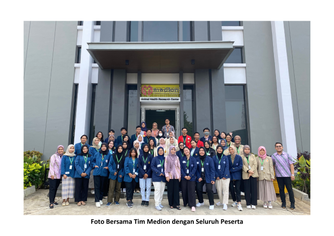 Diikuti oleh 43 peserta, terselenggaranya kegiatan ini bertujuan untuk meningkatkan wawasan mahasiswa mengenai industri farmasi veteriner, dan memberikan gambaran peran mahasiswa jurusan kedokteran hewan di Medion. Pada kesempatan ini, para mahasiswa kedokteran hewan tersebut diajak untuk mengikuti plant tour area Pharmaceutical Product Medion. Kemudian, diberikan pemaparan materi “Langkah Strategis Medion terhadap Pengembangan Industri Peternakan di Indonesia”. Selain itu, terdapat pula sharing (Campus Talk) terkait pengalaman dari pekerja Medion yang merupakan alumni kedokteran hewan dengan para peserta .