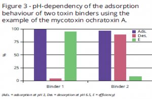 Pengaruh dari kondisi pH sangat signifikan terhadap kemampuan Mycotoxin binder dalam mengikat toksin. Tabel 3 menunjukkan hasil uji kemampuan mengikat toksin dalam kondisi asam (pH rendah) pada beberapa sampel mycotoxin binder memberikan hasil yang sama, namun ditemukan berbeda efeknya ketika dalam kondisi Netral dan Basa (pH tinggi).