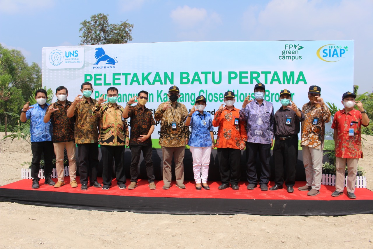 Peletakan batu pertama peresmian dimulainya pembangunan kandang closed house dilaksanakan di Desa Jatikuwung, Kecamatan Gondangrejo, Kabupaten Karanganyar, Kamis (3/6). Peresmian tersebut dilakukan oleh Rektor UNS, Prof. Dr. H. Jamal Wiwoho, S.H.,M.Hum. dan Andi Magdalena Siadari S.H, M.H selaku Sekretaris Jenderal Charoen Pokphand Foundation Indonesia.