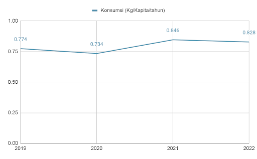 Sedangkan untuk konsumsinya, berdasarkan data dari Buku Statistik Peternakan tahun 2022, menjelaskan bahwa konsumsi daging ayam lokal naik dari tahun 2020 ke tahun 2021 dari 0,734 Kg/Kapita/tahun ke angka 0,846 Kg/Kapita/tahun. Sedangkan untuk tahun 2021 ke tahun 2022, angka konsumsi bisa dikatakan stagnan karena konsumsi per kapita dari tahun 2021 yaitu sebesar 0,846 Kg/kapita/tahun ke angka 0,828 Kg/kapita/tahun.