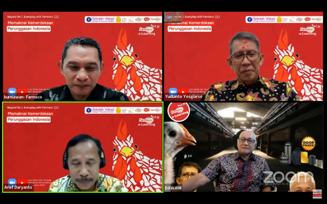 POULTRYINDONESIA, Jakarta – Momentum hari kemerdekaan yang jatuh pada tanggal 17 Agustus, membawa semangat tersendiri bagi seluruh rakyat Indonesia. Tak terkecuali bagi para insan perunggasan nasional. Sederet strategi dan harapan pun membumbung tinggi, demi kondisi perunggasan yang lebih baik. Hal ini mencuat dalam sebuah webinar dengan tema “Memaknai Kemerdekaan Perunggasan Indonesia” yang terselenggara secara daring melalui aplikasi Zoom, Jumat (26/8).