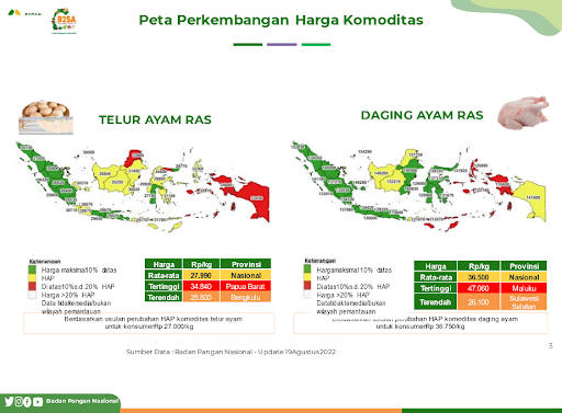 Pantauan Badan Pangan Nasional (2022) pasokan daging ayam ras di wilayah Kalimantan Timur dalam jumlah cukup. Hal ini ditandai dengan warna hijau pada gambar 1, dengan kenaikan harga maksimal 10 persen dari Harga Acuan Pembelian (HAP) di tingkat konsumen yang diatur dalam Perbadan nomor 5 tahun 2022. Untuk saat ini, kebutuhan daging ayam Kalimantan Timur sudah dapat dipenuhi 95 persen dari produksi setempat dari total konsumsi daging unggas 70 ribu ton per tahun. Sedangkan defisit 5 persen didatangkan dari luar Kalimantan Timur dalam bentuk karkas beku (frozen).