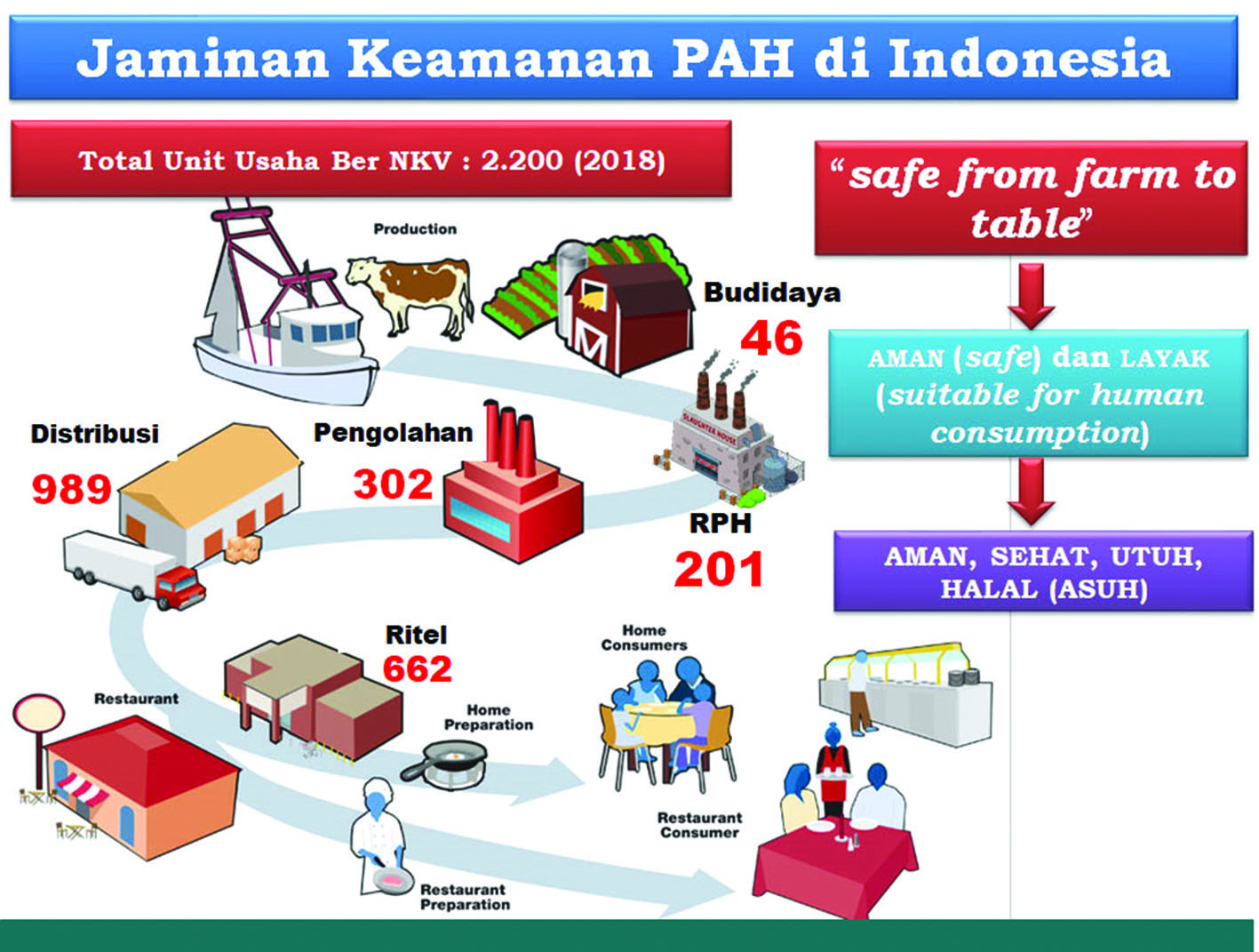 Masih banyak unit usaha di bidang olahan produk ternak yang belum memiliki sertifikasi NKV. Sangat diperlukan adanya pembinaan ke pelaku usaha tentang pentingnya NKV ini. Hal tersebut mendesak dilakukan karena praktek-praktek pemotongan unggas di luar RPHU dengan skala usaha kecil atau skala usaha rumah tangga yang dikelola masyarakat masih tinggi, dan pada umumnya berlokasi ditempat yang tidak memenuhi syarat, seperti di pemukiman padat penduduk, pasar tradisional, atau di tempat penampungan unggas. Pembinaan juga perlu segera dilakukan karena pelaku usaha tersebit belum menerapkan praktek higiene yang baik, yang umumnya disebabkan terbatasnya sarana dan fasilitas pemotongan unggas yang memenuhi persyaratan, dan rendahnya kesadaran dan pemahaman pelaku maupun konsumen tentang daging unggas ASUH.