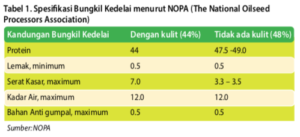 Kualitas bahan pakan dapat diukur berdasarkan sifat fisik, kimia, atau biologisnya. Khusus untuk bungkil kedelai, kualitas juga menjadi patokan dalam kontrak jual-beli antara pembeli maupun importir dengan penjual atau eksportir. Tabel 1 menampilkan standar kualitas BKK di Amerika Serikat yang ditetapkan oleh Asosiasi Pengolah Biji Minyak Nasional (NOPA). Pada prinsipnya kualitas bungkil kedelai yang diperdagangkan ada dua yaitu BKK dengan kulit dan tanpa kulit kedelai. Pabrik pengolahan kedelai (crushing plant) dapat melakukan atau tidak melakukan pemisahan kulit kedelai sebelum kedelai diekstraksi minyaknya.