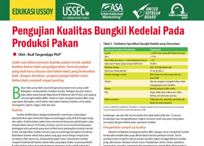 Bahan baku yang tidak sesuai dengan persyaratan mutu yang sudah ditetapkan membutuhkan tindakan koreksi. Terdapat dua jenis bahan baku pakan yang banyak digunakan di Indonesia dan di Asia, yaitu jagung serta bungkil kedelai (BKK). Artikel ini akan mengulas kualitas BKK, yang juga dapat diterapkan untuk bahan baku pakan berbasis kedelai, untuk pakan monogastric seperti unggas, babi dan ikan.