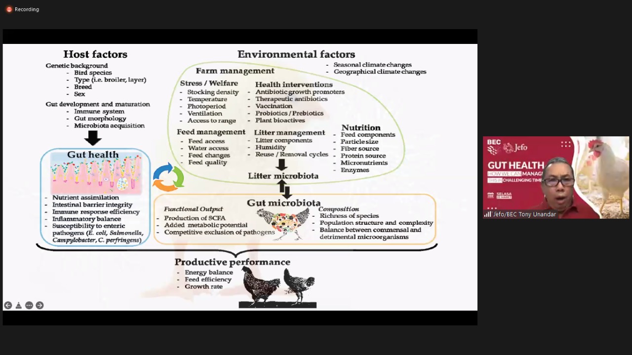 Mengingat pentingnya kesehatan saluran pencernaan tersebut, maka PT BEC Feed Solution Indonesia bekerjasama dengan Jefo Nutrition, menggelar seminar daring melalui Aplikasi Zoom Selasa, (22/3) dengan tema “How We Can Manage in This Challenging Times”.
