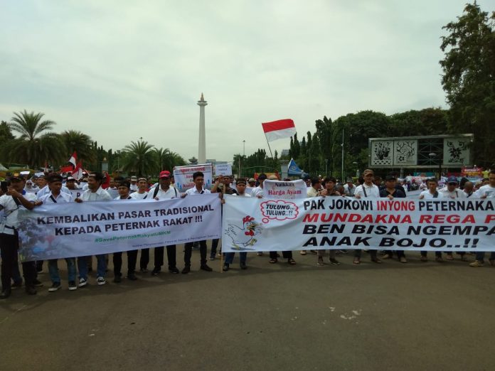 POULTRY INDONESIA, Jakarta- Berdasarkan catatan Pinsar Indonesia, sejak Oktober 2018-Maret 2019 rata-rata peternak ayam mandiri mengalami kerugian sebesar 3 ribu rupiah per kilogram ayam hidup. Hal tersebut yang membuat peternak broiler dari berbagai daerah datang ke Jakarta untuk melakukan aksi demonstrasi di depan Istana Negara Jakarta, Selasa (5/3).