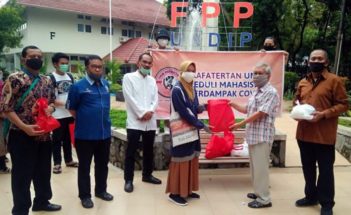 Penyerahan bantuan kepada mahasiswa Fakultas Pertanian dan Peternakan Undip yang tidak bisa pulang kampung akibat pandemi COVID-19.