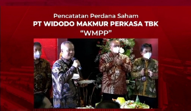 POULTRY INDONESIA, Jakarta – PT Widodo Makmur Perkasa Tbk,(WMP) telah resmi melaksanakan pencatatan perdana saham di Bursa Efek Indonesia (BEI) pada hari Senin (6/12),dengan kode saham WMPP, dengan harga initial public offering (IPO) Rp 160 per saham.